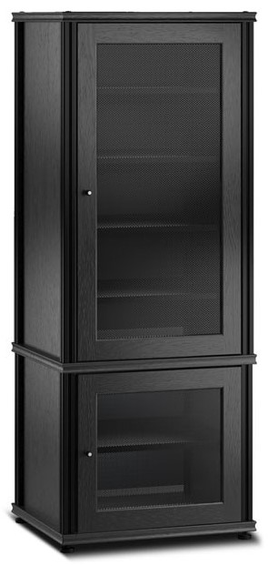 Perforated doors panels permit IR signals, add ventilation and mask speakers.